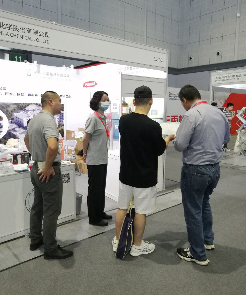 展会期间,永华携化学试剂、电子(zǐ)化学品等系列产品亮相,得(dé)到了现场厂家、经销商(shāng)、终端用户的关(guān)注,展台周围人头攒动,工(gōng)作人员热情接待,耐心讲解。