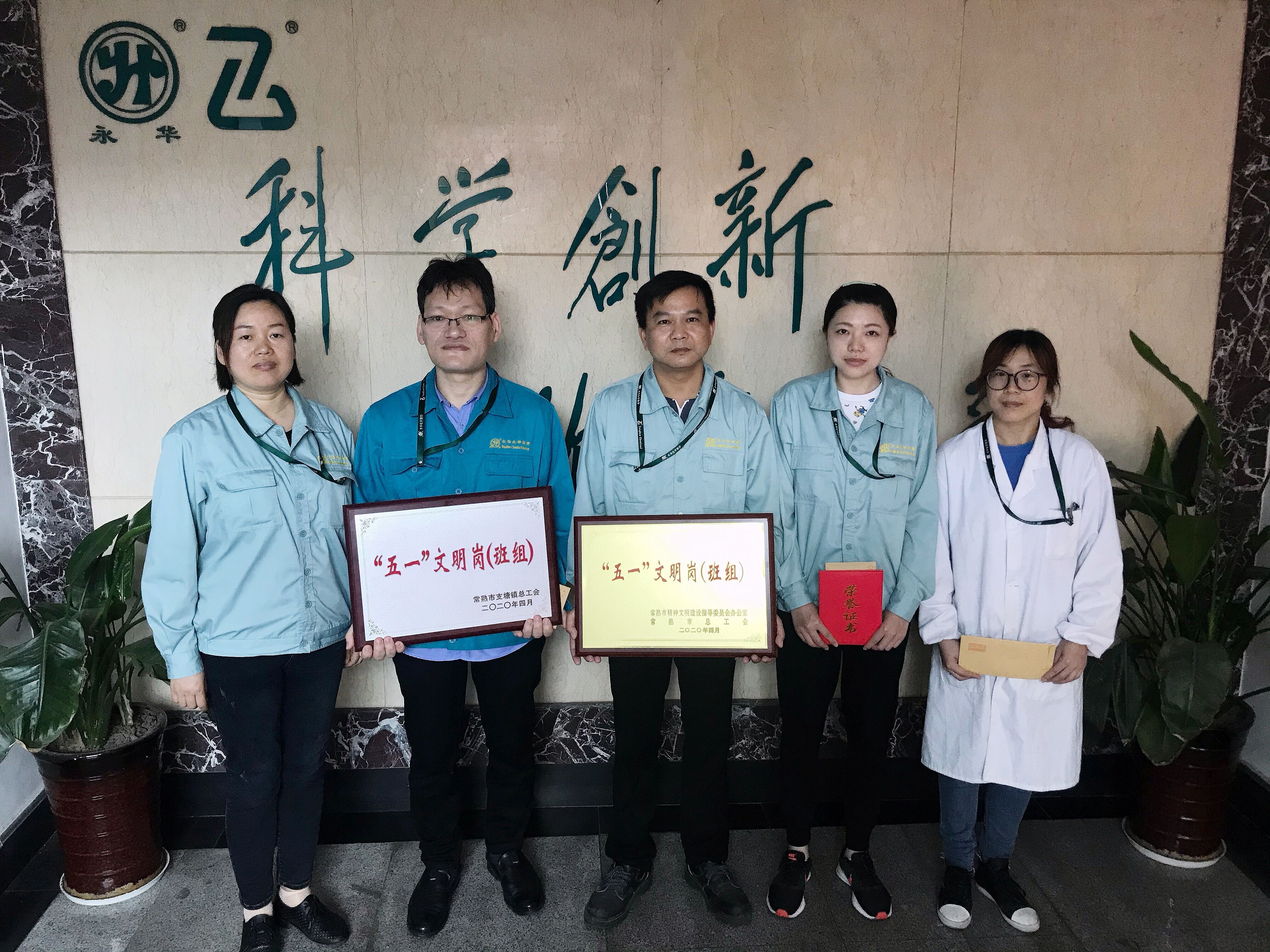 近日,永华化学股份有限公司研发部被支塘镇总工(gōng)会授予“支塘镇‘五一’文明岗(班组)”称号,高燕(yàn)被评为支塘镇文明职工(gōng)。永华化学股份有限公司安环部被评为常熟市“五一”文明岗(班组),倪艳菊被评为常熟市“五一”文明职工。