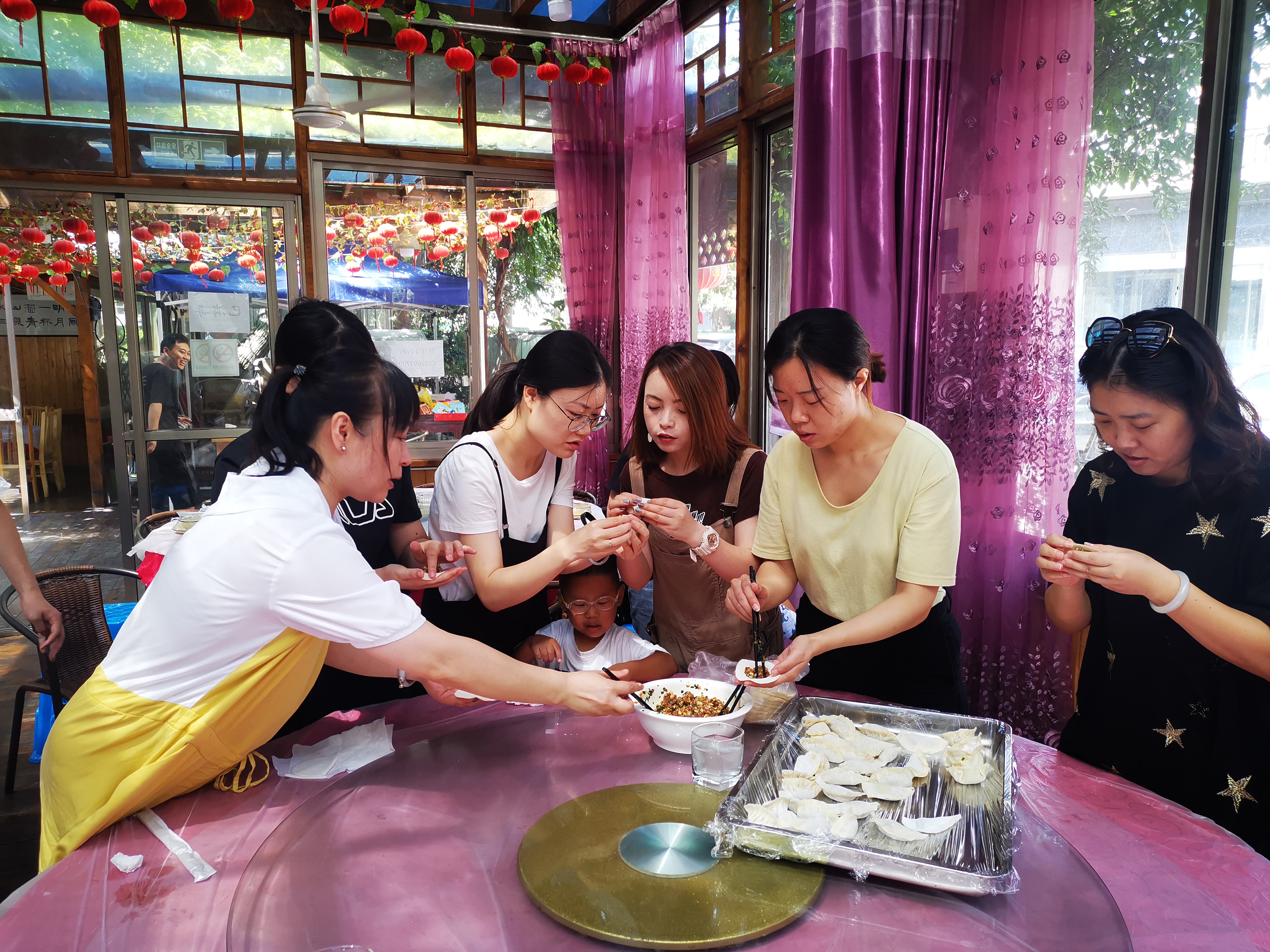 还有一部分人留在茶室,一起(qǐ)包饺子。茶室老板早早的准备了馅料(liào)、饺子皮(pí),各个部门的同事也都跃跃欲试,各显本事。不会包(bāo)的(de)同事也不忘认真请教,不(bú)过一会就已经学会了。一只只饺子就这样从大家的巧手中捏出来了,摆满了一桌。