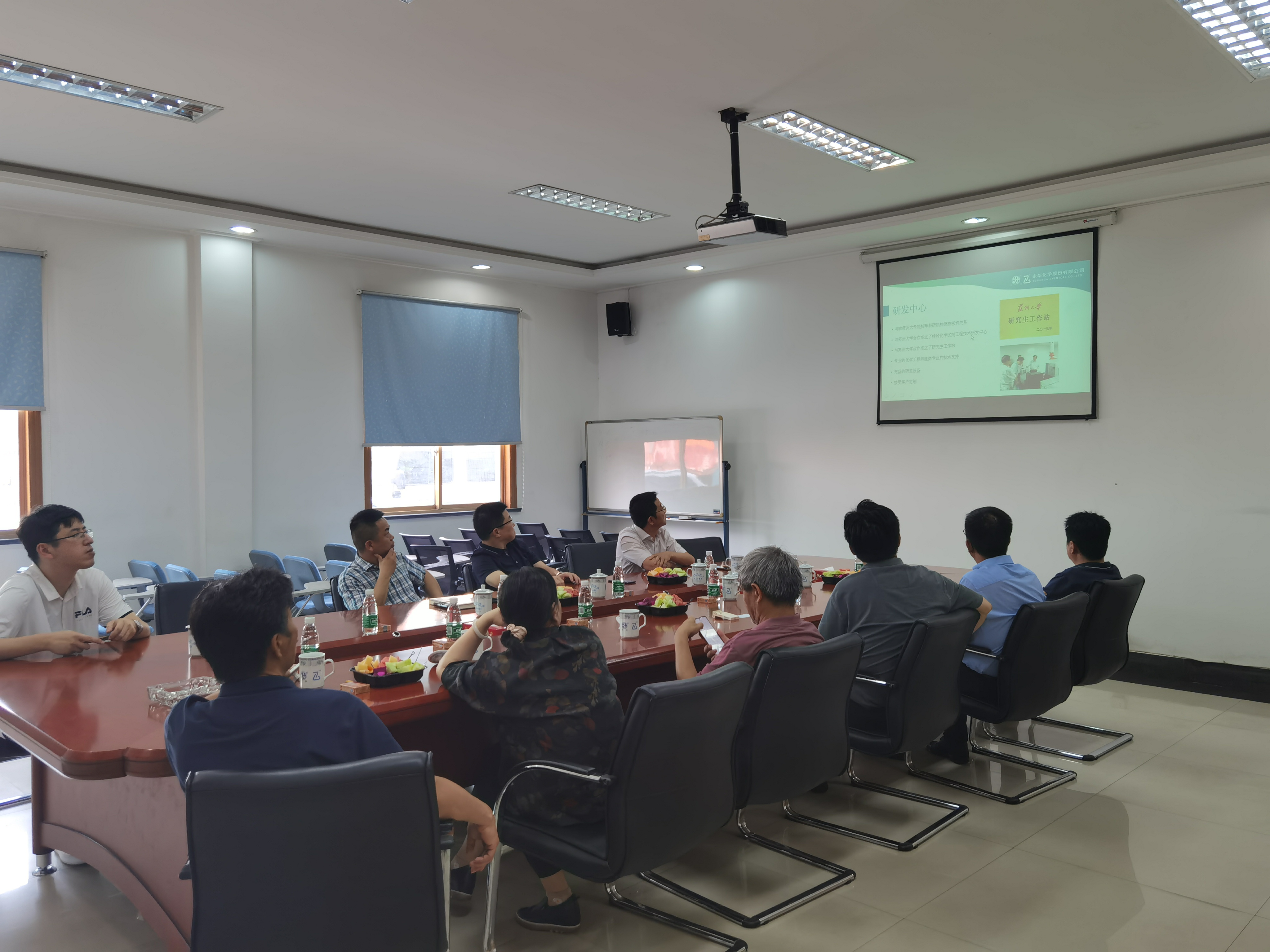 会上,调(diào)研组(zǔ)听取了(le)市政协委员、公司总经理顾学峰关于企业发展(zhǎn)历(lì)程、技术研发、安(ān)全生产以及新工厂规划等方面的介绍,同(tóng)时观(guān)看了公司宣传片,并就公司发展(zhǎn)前(qián)景、当前重点难点工作等(děng)进行了交流。