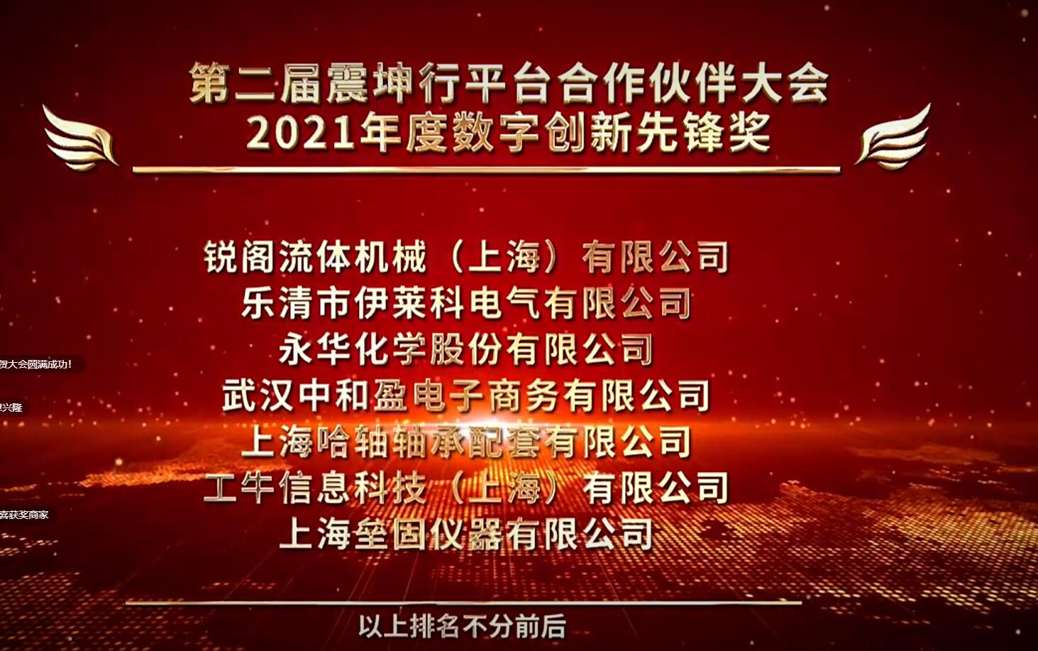 2022年1月6日(rì),第二届震坤行平台合作伙伴大会在震坤行视频号线上直播(bō),永华化学(xué)股份有限公司获评2021年度数字创新先锋奖。我司副总经理宗晓雷对此次(cì)大会发表贺词。